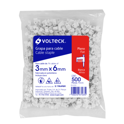 Grapa blanca para cable plano de 3x6 mm C/500