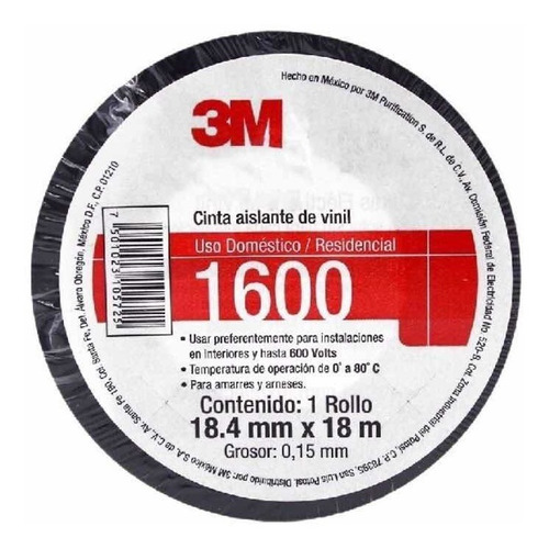 Cinta Aislante De Vinil, 1600, 18.4 Mm X 18 M 3m Temflex